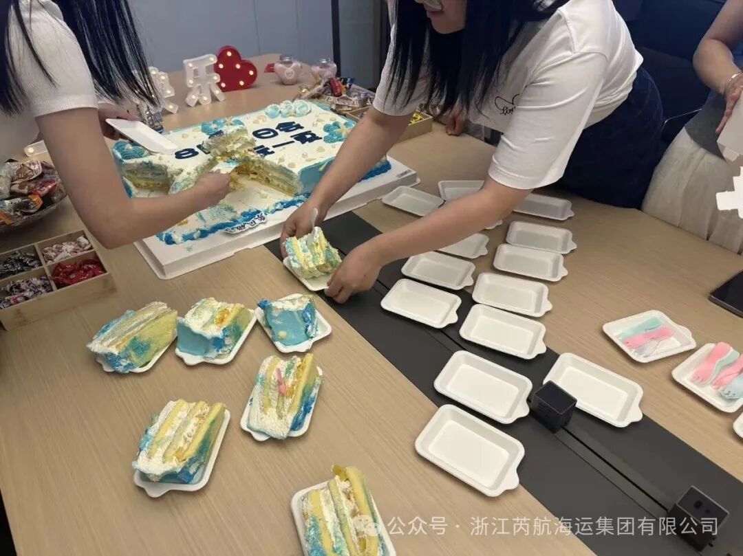 生日会现场,丰富多样的美食。暖心美味的饮品、香甜诱人的糕点、新鲜美味的水果以及各种可口的零食,摆满了桌面,让人垂涎欲滴。每一个细节都透露着公司对员工的关爱。