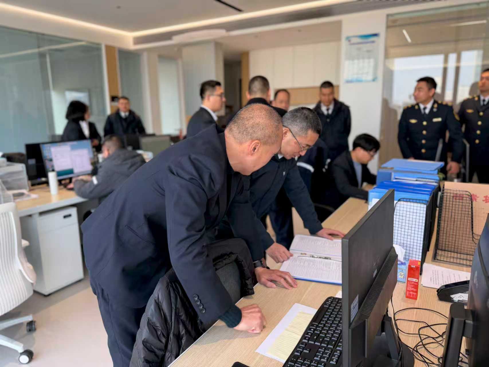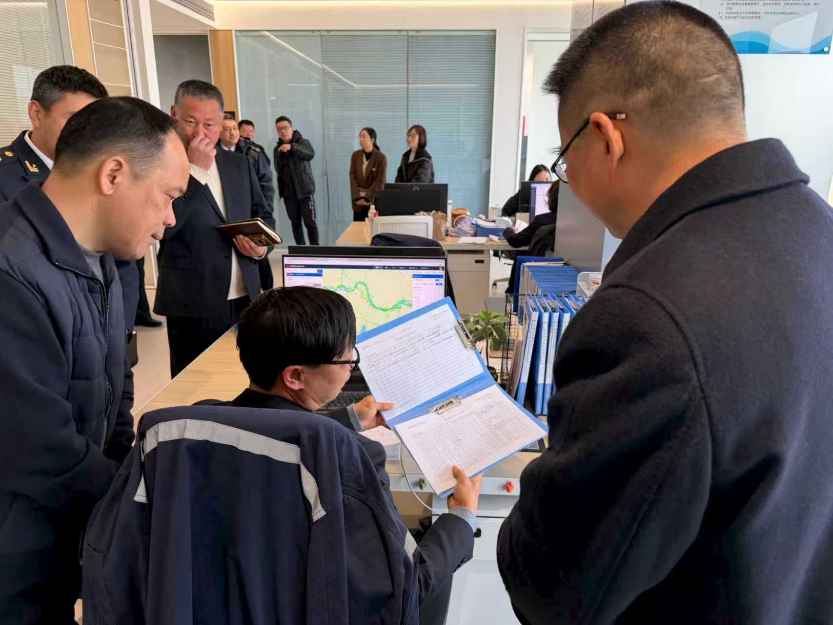 春节将至,为切实抓好节日期间涉海涉港领域安全生产工作,有效防范和遏制各类安全事故发生,确保人民群众生命财产安全和海上形势稳定。2026年2月11日,台州市海洋经济发展局、台州海事局、台州市港航事业发展中心组成联合督导组,由市海经局副局长陈再灵、台州海事局副局长蔡国军、市港航中心副处长章铖等带队,赴中数船舶管理(台州)有限公司开展春节前安全生产专项督导检查。