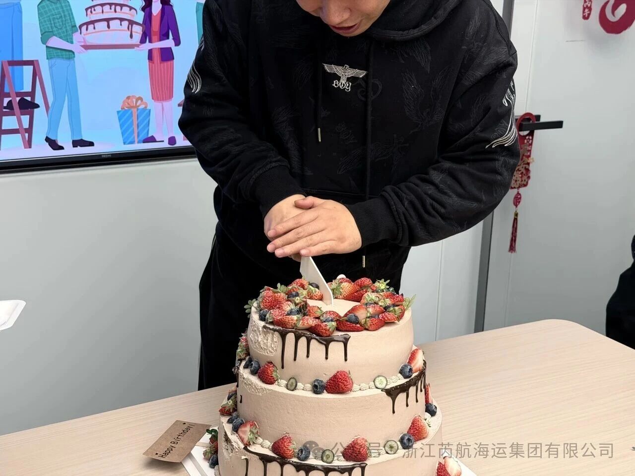 伴随着欢快的生日歌,精美的生日蛋糕被缓缓推出,烛光摇曳,映照着每一张灿烂的笑脸。